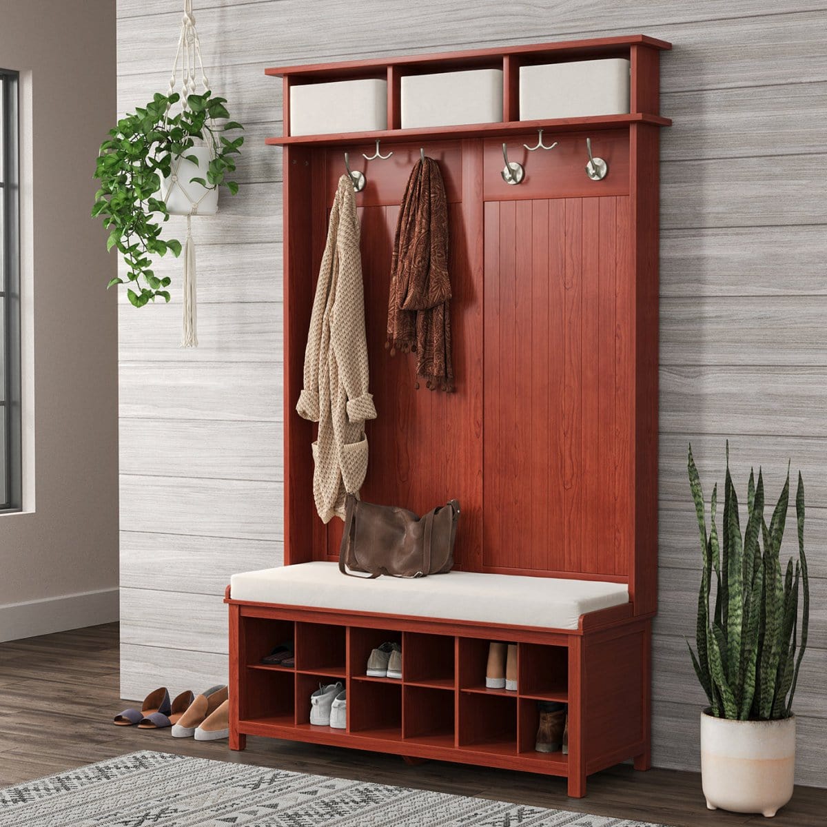 Solid Wood Hall Tree & Shoe Bench | The All-in-One Entryway Command Center